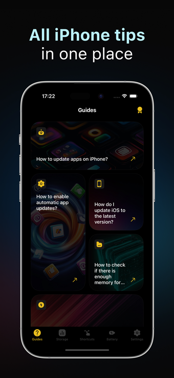 Приложение также включает в себя обширные руководства и учебники, которые предлагают пошаговые инструкции по различным задачам, таким как включение автоматических обновлений и организация хранилища. Благодаря своему удобному интерфейсу, Обновление всех приложений облегчает пользователям отслеживание обновлений и принятие лучших практик для поддержания производительности их iPhone. Для пользователей, ищущих более упрощенный опыт, доступна подписка для полного доступа.